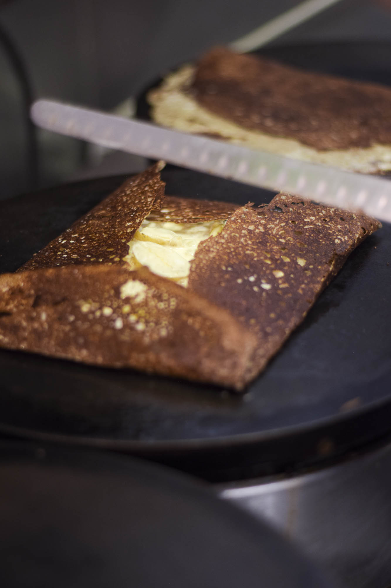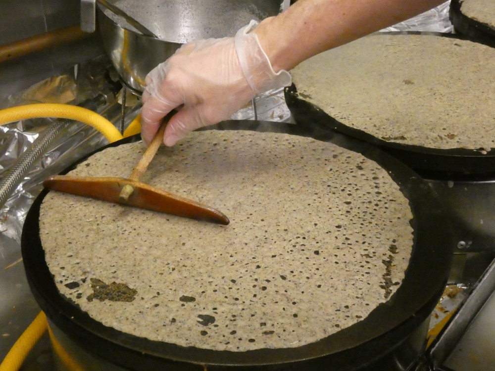 Dans le Finistère, on parle de crêpe de blé noir. Le tour de main y est fin, croustillant sur les bords et moelleux au centre.